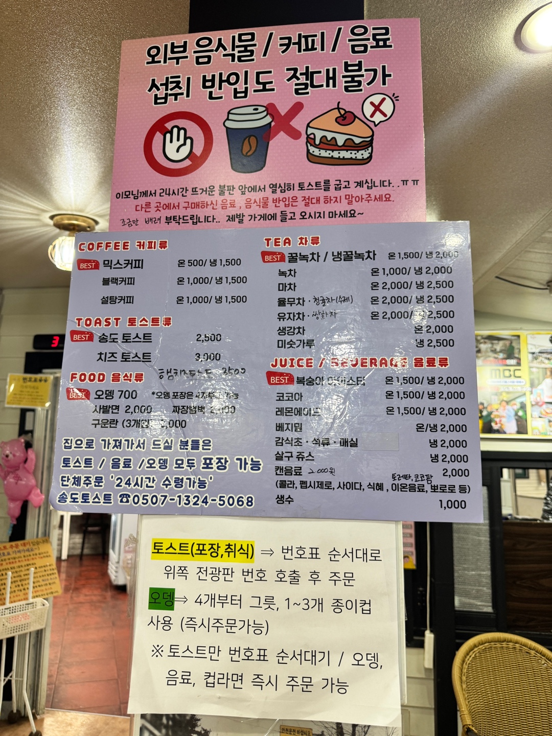 가게의 대표 메뉴인 송도토스트, 치즈토스트, 햄치즈토스트는